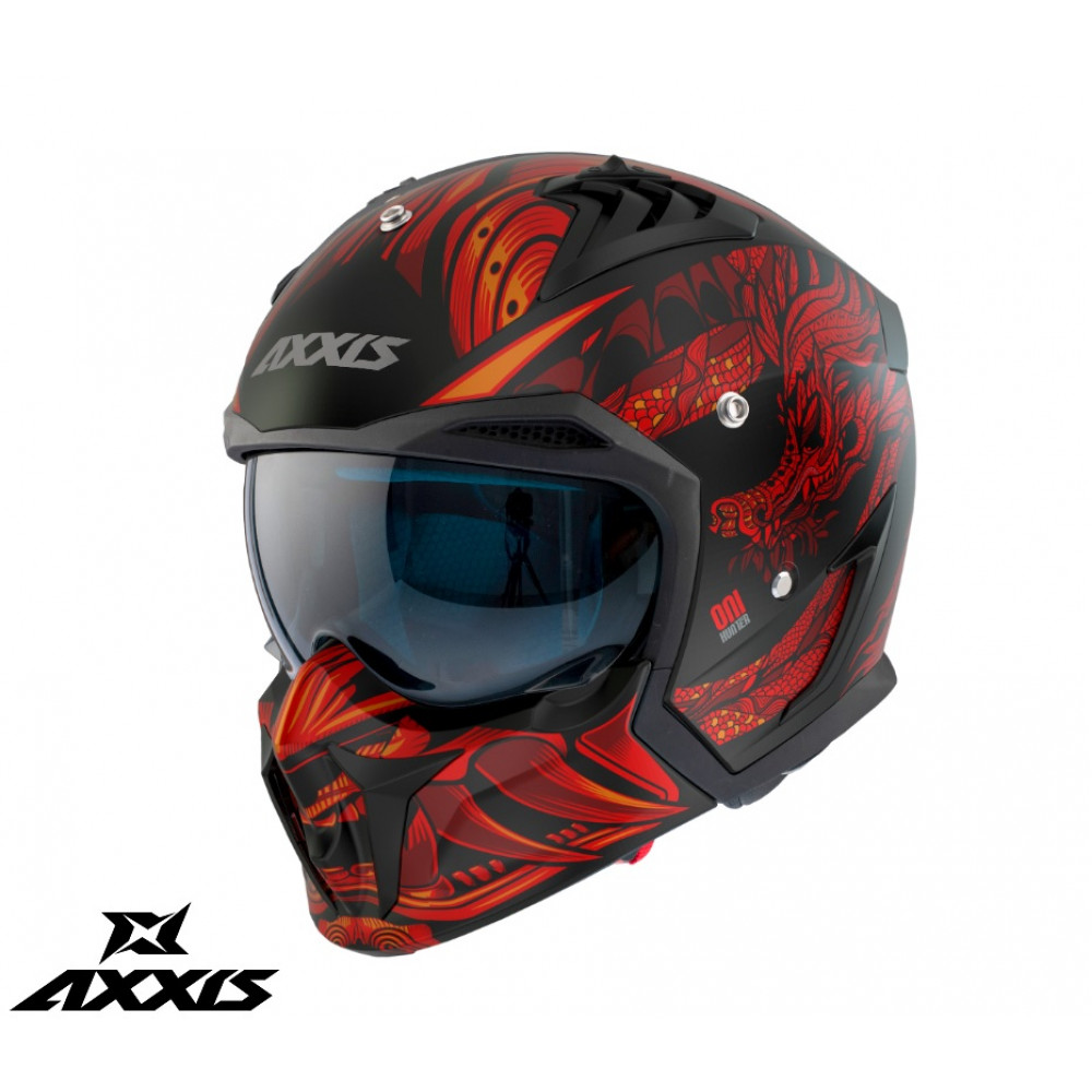 Casca Axxis model Hunter SV ONI B5 rosu mat (ochelari soare integrati) - masca (protectie) barbie si cozoroc detasabile