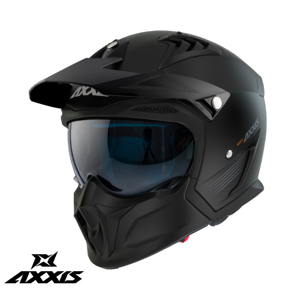 Casca Axxis model Hunter SV solid A1 negru mat (ochelari soare integrati) - masca (protectie) barbie si cozoroc detasabile