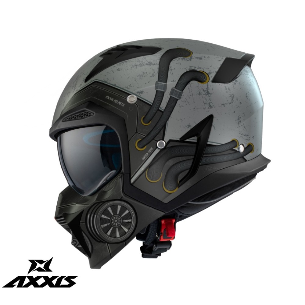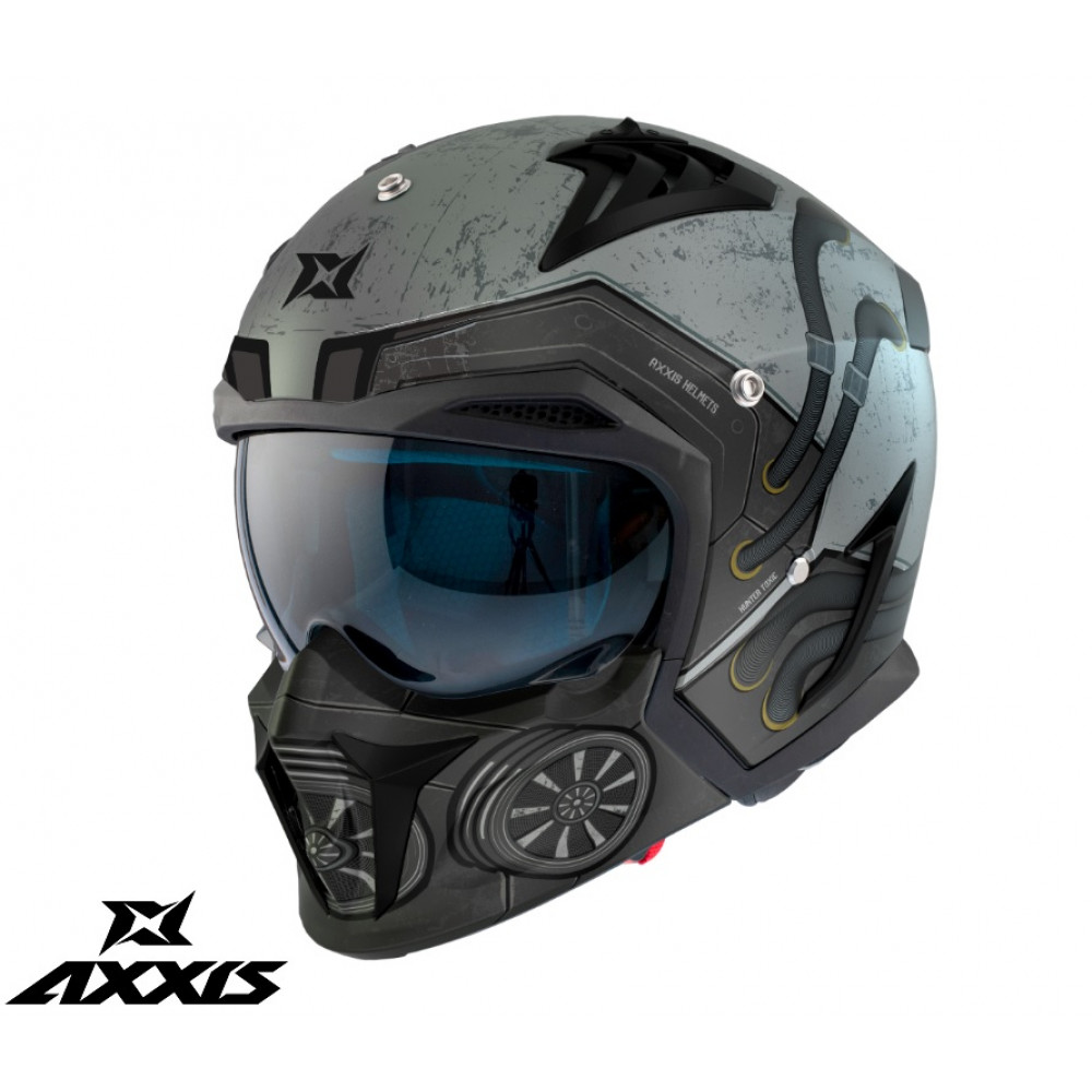 Casca Axxis model Hunter SV Toxic C2 gri mat mat (ochelari soare integrati) - masca (protectie) barbie si cozoroc detasabile