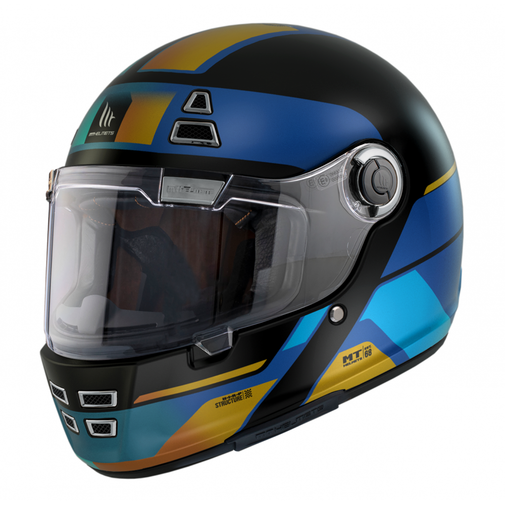• mecanism vizor: echipa R&D a producatorului MT Helmets a proiectat un mecanism de viziera cu eliberare rapida a vizierei (Quick Release System);