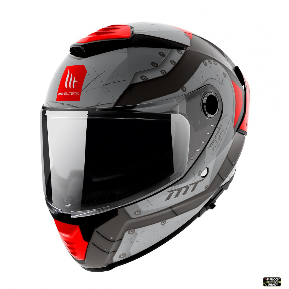 - este un model de casca sport-touring, care incorporeaza noul mecanism de viziera tip MT-QVSS, un sistem patentat de MT si care permite shimbarea extrem de rapida a vizierei;