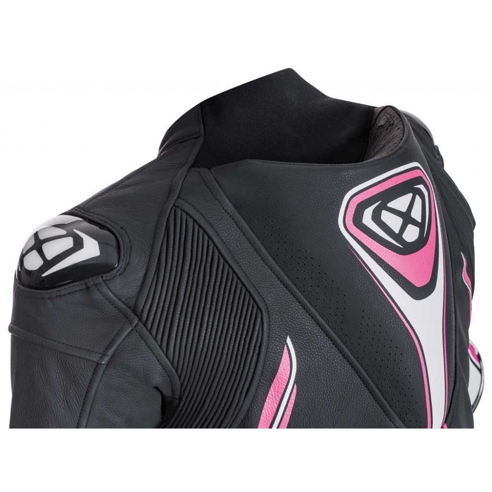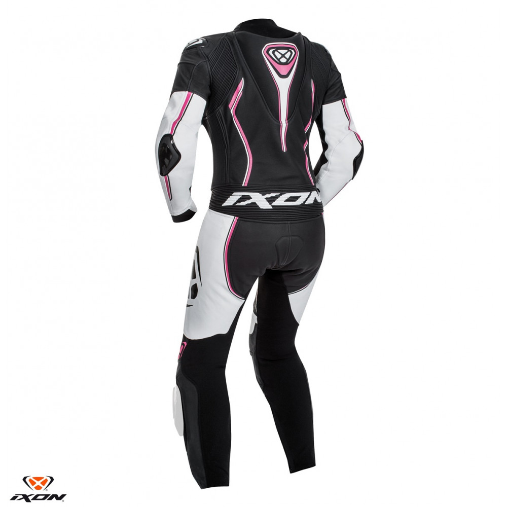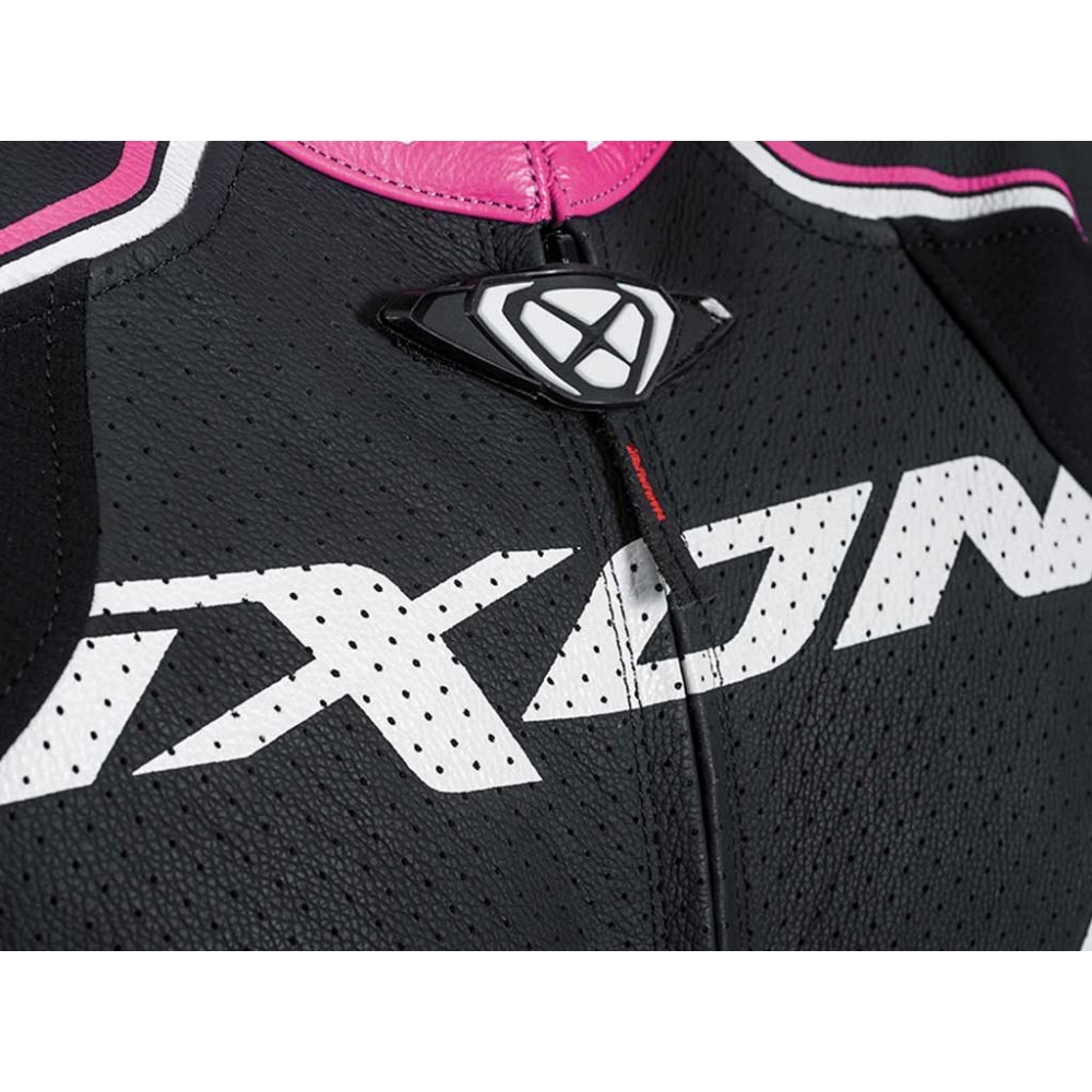 Costum (combinezon) motociclete femei piele Ixon vara model Vortex Lady LS culoare: negru/alb/fucshsia (roz)