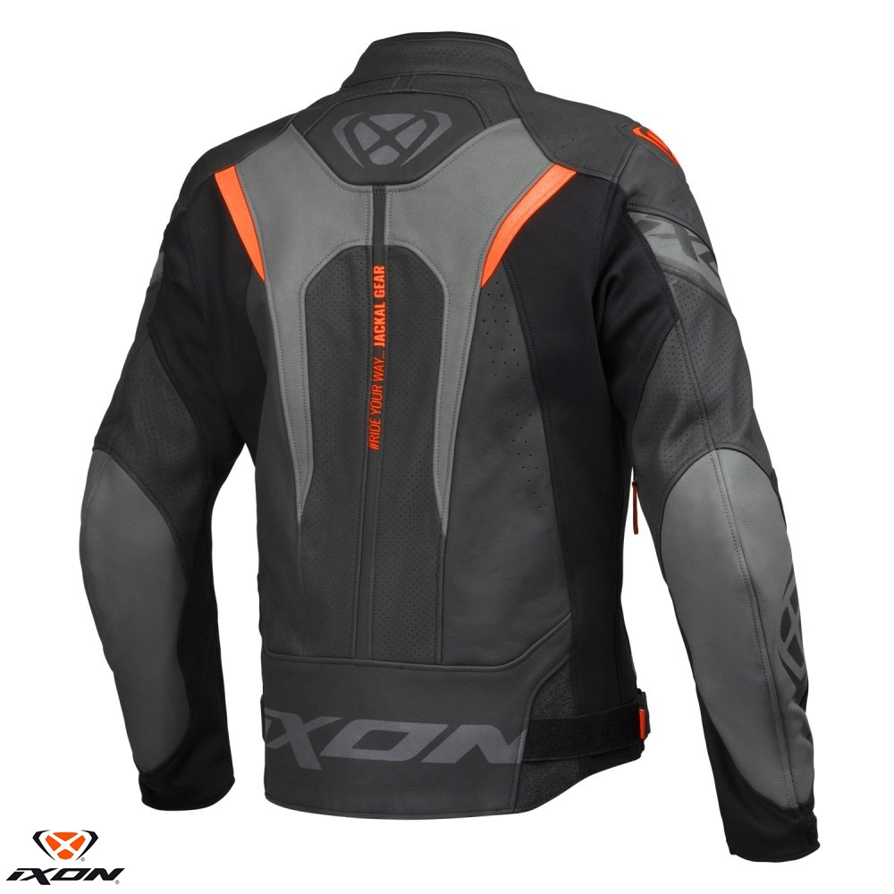 Geaca (jacheta) motociclete barbati piele Racing Ixon vara model Jackal JKT MS culoare: negru/antracit/portocaliu