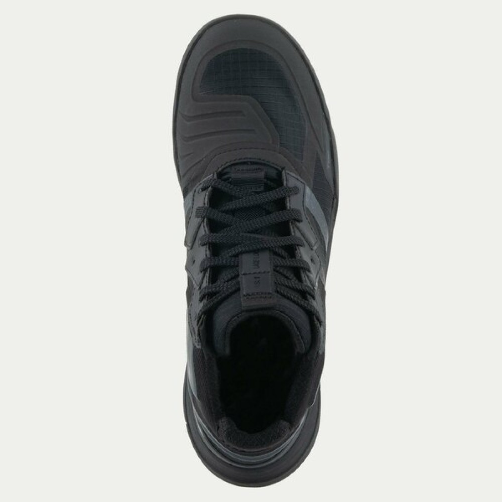 Constructed from a performance ripstop upper with seamless reinforcement panels and a molded, semi-rigid heel piece with injected foam, the Speedflight Shoes have an advanced and lightweight main chassis. Reinforcing the shoe is the Alpinestars TPF Transversal Protection Frame midsole which is sandwiched between a dual density rubber sole with front protective walls, a comfort layer, and the EVA durable yet comfortable midsole with lateral stabilizers. Also incorporated into the sole is an asymmetric TPU heel counter for added protection and stability, plus an OrthoLite® removable insock for great breathability and all-day walking comfort. The sole itself also features a more “aggressive” 10mm drop, meaning the height difference between the rider’s heel and toes, allowing for great walking comfort off the bike. Altogether, between the front to back drop, compressed EVA midsole, and high sidewalls, the Speedflight provides a “cradled” fit and enhances foot stability for walking comfort, as well as riding protection and confidence.