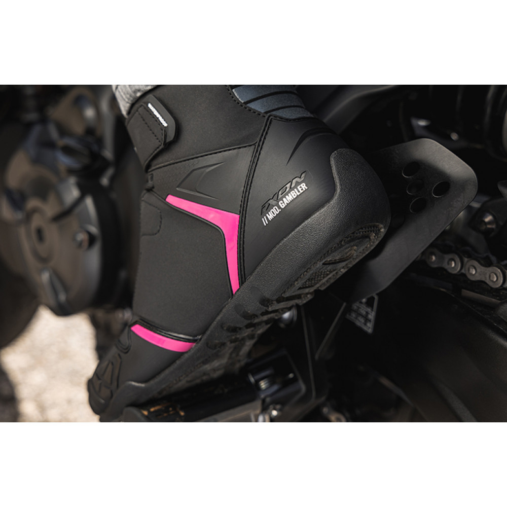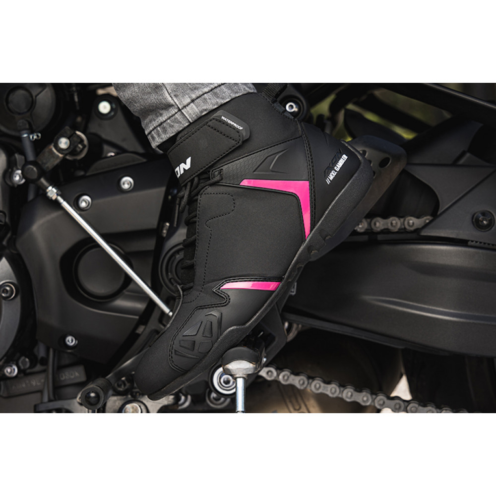 Ghete moto Roadster femei All Season Ixon model Gambler WP LS culoare: negru/fuchsia (roz) (100% waterproof), cod produs: MT37979