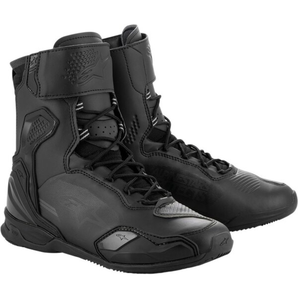 Cu un confort asemănător cu cel al ghetelor și protecție asemănătoare cu cea a cizmelor, ghetele moto Superfaster Tech au o înălțime de aproximativ 25 cm, oferind astfel pilotului o acoperire mai bună în ansamblu și, mai important, includ protecție mai sofisticată, cum ar fi protecția integrată pentru tibia inferioară și noul sistem intern de protecție a gleznei semirigid, cu protecție împotriva impactului la nivelul maleolei și protecție extinsă a tendonului lui Ahile. Pentru a oferi protecție suplimentară în partea superioară a ghetei Superfaster, sunt prezente discuri duble pentru glezne, panouri laterale TPR pe glezna exterioară, un contrafort de călcâi TPU consolidat și o cutie pentru degetul mare cu strat TPR și consolidare laterală pentru alunecare pe degetele de la picioare. Talpa în sine include un cadru de protecție transversală TPF Alpinestars care constă în diverse straturi de protecție pentru a preveni îndoirea sau torsiunea piciorului în direcții greșite, simultan cu spumă PU moale, o pernă pentru călcâi EVA, precum și o talpă OrthoLite® detașabilă și respirabilă. Superfaster este garantat să ofere protecție pentru motociclism pe tot parcursul zilei, cu confort la mers și stat în picioare pe tot parcursul zilei. Restul șasiului Superfaster este construit din microfibră avansată și panouri Rideknit® cu părți termosudate fără sudură și este ținut în siguranță pe piciorul pilotului cu un sistem de închidere rapidă și o deschidere cu fermoar lateral medial lung. Designul general este, de asemenea, sculptat cu un punct de flexibilitate ingineresc pentru libertate de mișcare, o construcție pre-îndoită înainte pentru confort la condus și un profil general redus pentru a permite pantofului Superfaster să se potrivească ușor sub orice pantalon de motocicletă. Superfaster arată ca o încălțăminte sport Alpinestars în blugi, se simte ca pantoful tău preferat atunci când mergi datorită noii tălpi. În plus, Superfaster protejează ca o adevărată cizmă datorită înălțimii sale și setului complet de protecție și oferă un aspect elegant cu maximă protecție și confort.