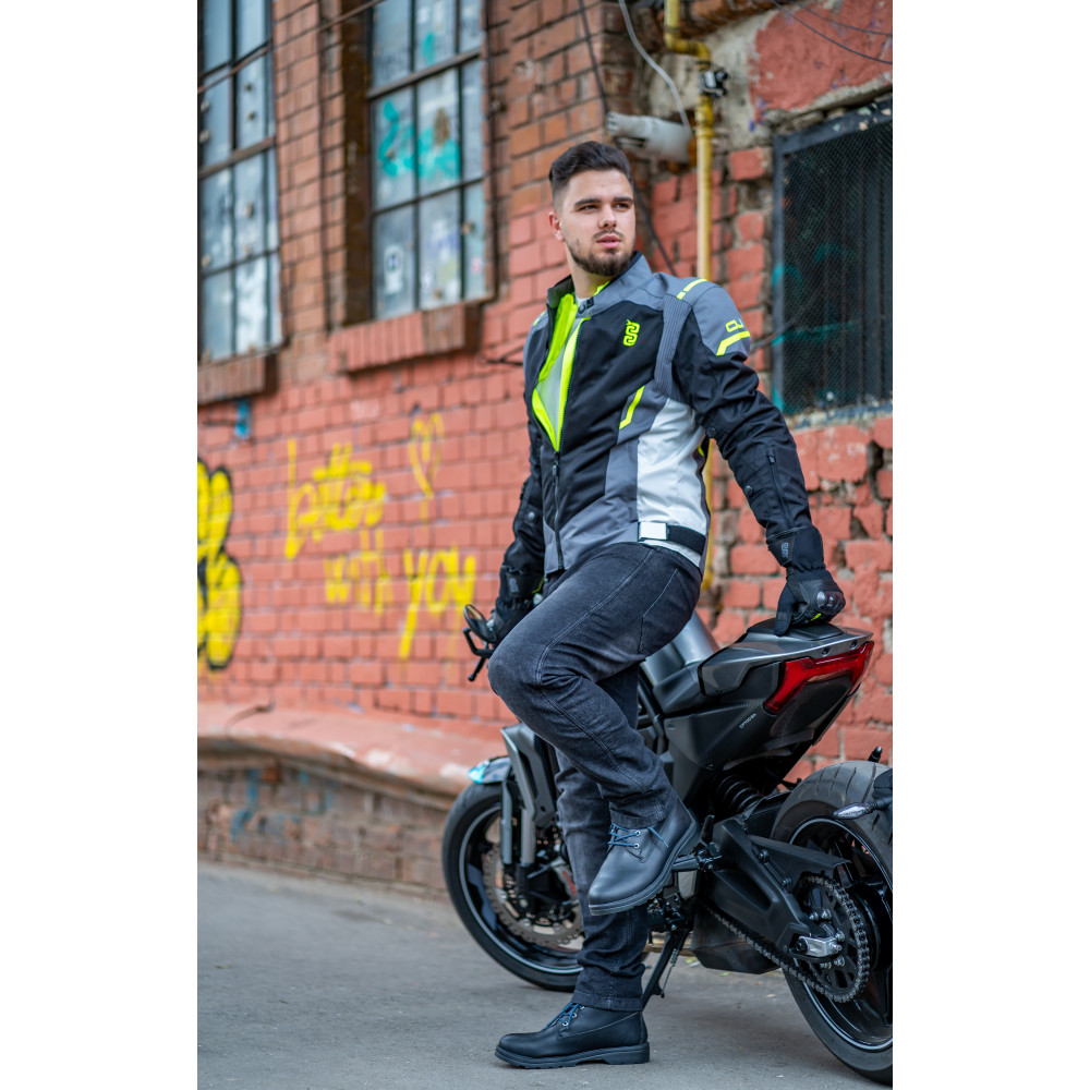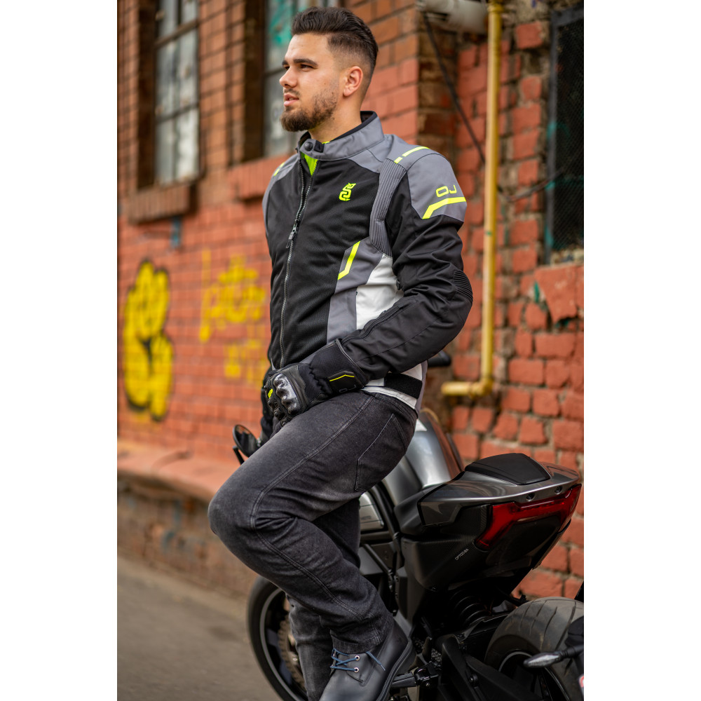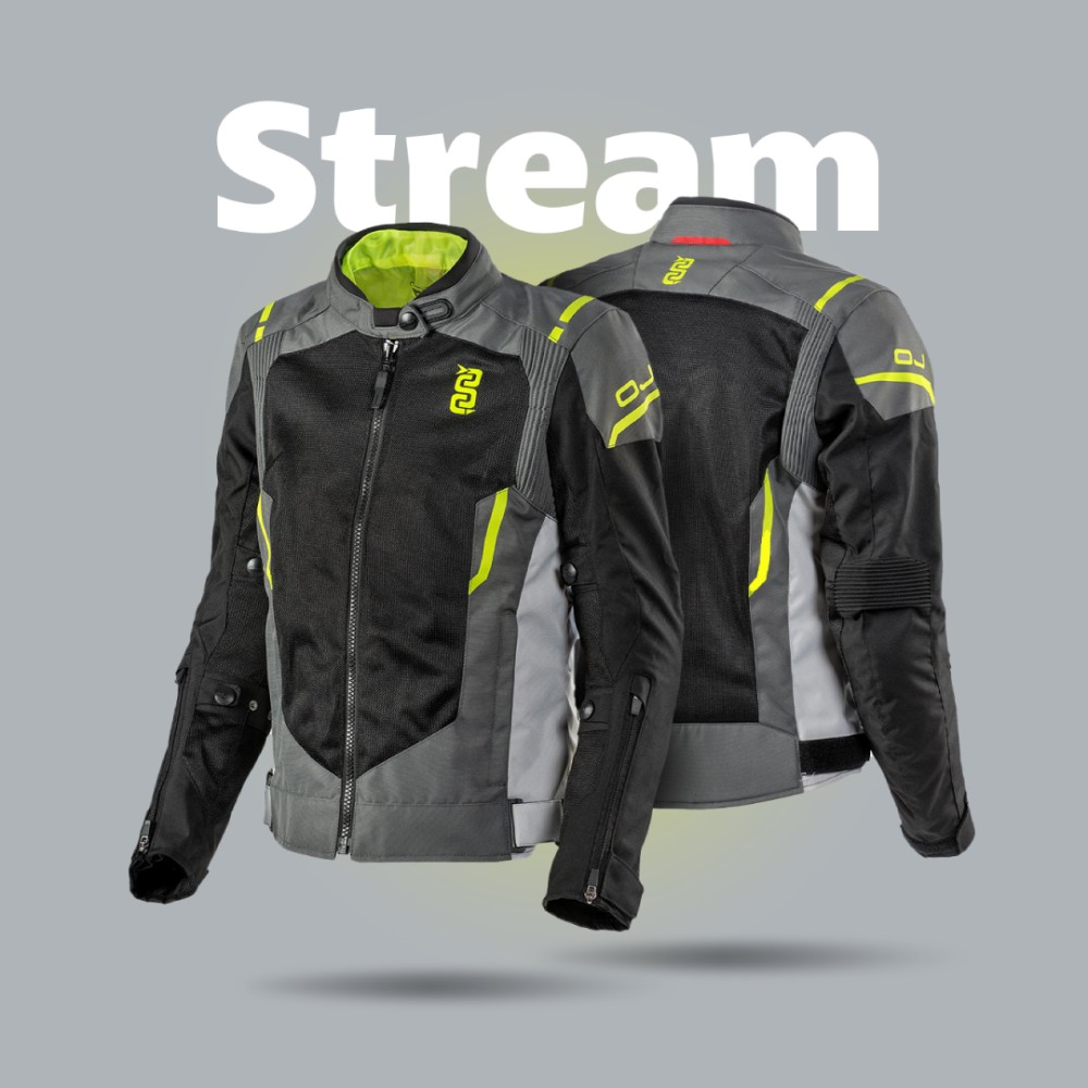 Stream este o geacă de primavara/ vară/ toamna, perforată, ventilata, concepută astfel încât să nu fii nevoit să renunți la protecție și siguranță chiar și în cele mai călduroase zile.