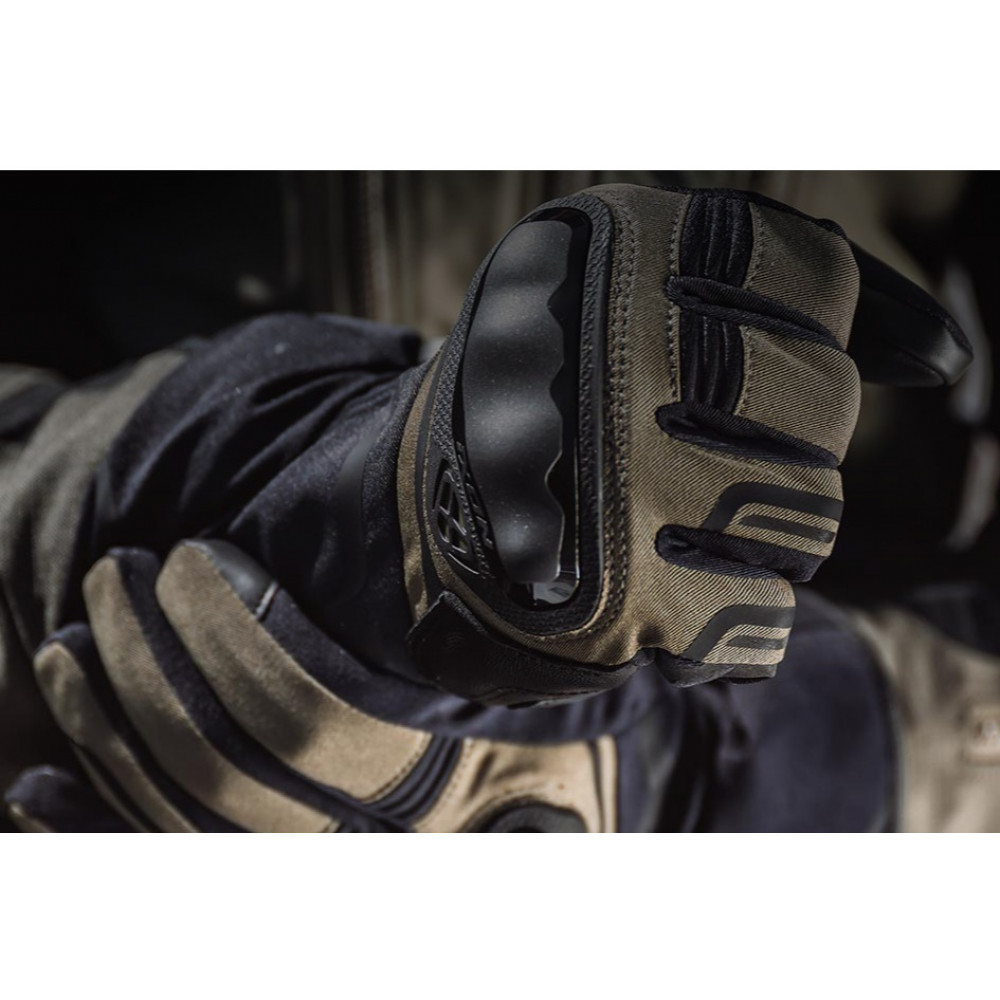 Manusi barbati Touring/Adventure Mid-season textil/piele Ixon model Drizzle MS culoare: khaki/negru – degete tactile (manusi lungi)