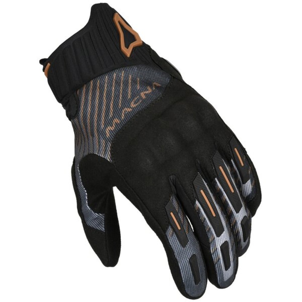 The new Octar 2.0 gloves by Macna are perfect for hot riding conditions, just like its predecessor. Biggest improvement is the new RISC Armax palm slider which has no seams and thus significantly increases your safety in that area. The RISC 3D knuckle protection is robust yet comfortable as it is pre-formed and made of comfortable temper foam. The fingers are finished with flexible TPR accents and there is an extra layer of soft padding underneath the outer layer at the thumb. Top it off with a grip print at the palm and your adventurous touring glove is complete!