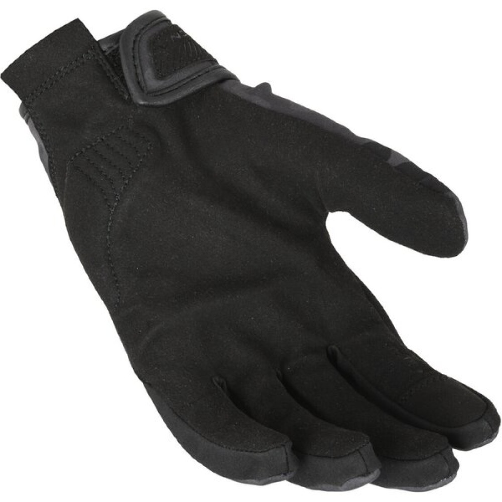 The Spactr motorcycle glove by Macna is made of synthetic nubuck at the palm and softshell fabric at the back of the hand. It is fitted with a tricot liner. The absence of a waterproof membrane prevents you from sweating in warm riding conditions. The knuckles are reinforced with ethylene vinyl acetate (EVA) which is rubber-like in its finish and flexibility and provides impact absorption. Thanks to the Touch Tip, you'll be able to operate touch screens without taking your gloves off.